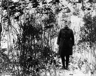 היינו 300 יארד בקירוב לפני קו החזית שלנו. כשהבנו שאנו מצויים בראש הגבעה ומאגפה השמאלי עצרנו להתייעצות. חלק מהבחורים רצו לתקוף מהאגף הזה, אבל ארלי ואני וכמה מהאחרים סברנו כי הטוב ביותר הוא אם נפנה ימינה מעבר לגבעה ונקפוץ עליהם מאחור. החלטנו ללכת על התקפה מאחור. "התפרשנו במערך קרב וכשאנו מדלגים משיח לשיח, חצינו במהירות את פסגת הגבעה וירדנו את הערוץ שמאחוריה. ואז, לפתע, הקפנו אותם מאחור. הגרמנים הראשונים שראינו היו שני גברים עם סרטי צלב אדום על זרועם. הם זינקו מתוך הסבך היישר מולנו וברחו משם כמו שני ארנבים מפוחדים. קראנו להם להיכנע, ואחד מהם ירה לעברנו והחטיא. והם המשיכו לרוץ. רצינו לשבות אותם לפני שיספיקו להזעיק את חבריהם. היינו עתה מאחורי ביצורי הגרמנים ובעורפן של אותן מכונות הירייה שעיכבו את התקדמותנו המהירה. היינו עמוק בתוך הסבך, כך שלא יכולנו להבחין בגרמנים והם לא יכלו לראותנו. אבל יכולנו לשמוע את מכונות הירייה שלהם בבהירות איומה. הצוות של סאווג' הוביל, שלי אחריו ובעקבותינו באו הצוותים של ארלי ושל קאטינג…וכאשר חצינו פלג מים קטן, נתקלנו ב-15 או 20 גרמנים; הם הרימו את ידיהם וצעקו 'קאמראד!'. המפקד הורה לנו לא לירות: הם נכנעו בלאו הכי. "הם היו חיילי מפקדה. חובשים, נושאי אלונקות וקשרים, וכן מייג'ור אחד ועוד שני קצינים. הם היו באמצע ארוחת הבוקר שלהם והייתה שם אנדרלמוסיה של אומצות בשר, מקפאים, ריבות וככרות לחם. הםא לא היו חמושים, למעט המייג'ור. זינקנו לכיוונם, היקפנו אותם, כיוונו אליהם את כלי נשקנו והורינו להם להשאיר את ידיהם למעלה. הם צייתו. אני מניח שהם חשבו שכל הצבא האמריקני היה מאחורינו. אנחנו, מצידנו, לא אמרנו להם שום דבר שיסתור את זה. שום ירייה לא נורתה ולא נאמרה בינינו שום מילה למעט כשאמרנו להם להרים ידיים. "ואז פתחו עלינו הגרמנים מהגבעה באש…מישהו, אולי המייג'ור הגרמני, צעק משהו בגרמנית שלא הבנו. ואז סובבו הגרמנים את כל מכונות הירייה שהיו על ראש הגבעה שבשליטתם וירו עלינו. היו שם כשלושים איש. המרחק בינם לבינינו לא עלה על עשרה מטרים. לא היה סיכוי שהם יחטיאו. והם לא החטיאו…הם חיסלו את כל הצוות של סאווג' ואת כל אנשי הצוות שלי חוץ משניים, פצעו את קאטינג והרגו שניים מהצוות שלו ורק הצוות של ארלי היה עדיין בסבך ולא נמצא בקו האש הישיר של מכונות הירייה, כך שכולם ניצלו מפגיעה. כולם למעט ארלי עצמו. הוא נפל כשגופו ספג שלושה כדורים. מה שהפך אותי למפקד. ובאותה שעה הייתי בשטח הפתוח, חשוף לחלוטין".